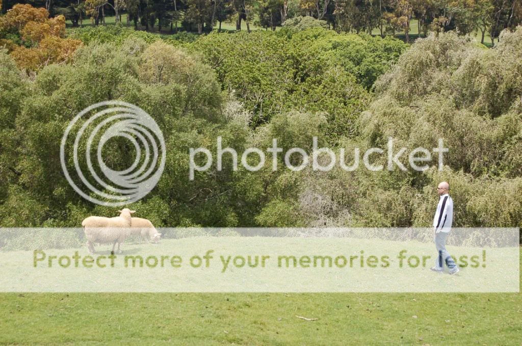 This is me trying to pet the sheep. They kept running away, so I tried to sneak up on them.